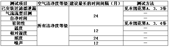 最長(zhǎng)測(cè)試時(shí)間間隔是根據(jù)近年來(lái)我國(guó)一些合資企業(yè)的內(nèi)部質(zhì)量管理?xiàng)l款以及ISO 14644-2的空氣潔凈度認(rèn)證測(cè)試要求而編制的。