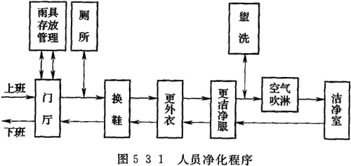 5.3.6 人員凈化用室和生活用室的空氣潔凈度等級,宜由外至內(nèi)逐步潔凈,室內(nèi)可送入經(jīng)過高效空氣過濾的潔凈空氣。