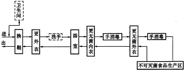 圖5.4.4 不可滅菌食品生產(chǎn)區(qū)人員凈化程序